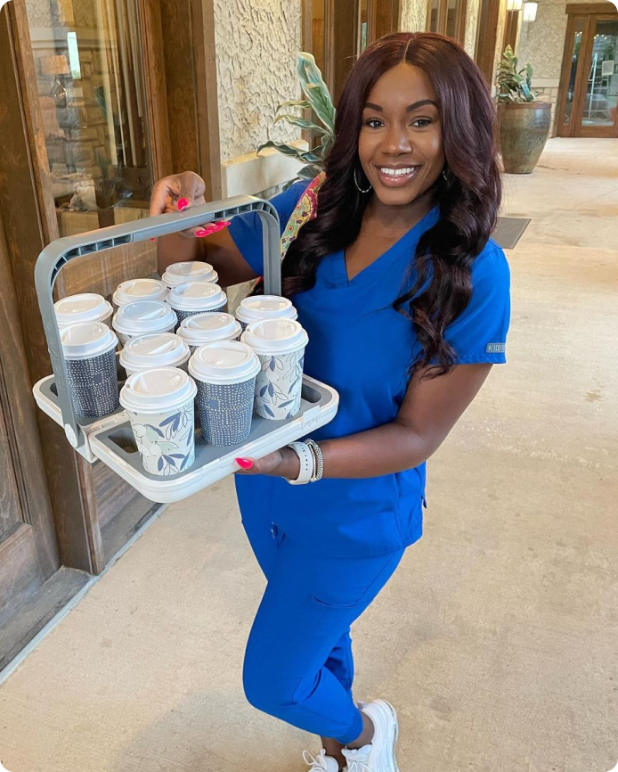 Whether you are a busy sales representative visiting clients, a medical staff member on the go, an efficient office admin running errands, or a multitasking mom juggling various responsibilities, bevee is the perfect beverage holder for you. Imagine effortlessly carrying up to 6 or 12 drinks with just one hand, minimizing trips and avoiding spills.