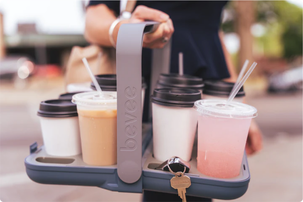 We designed bevee with you in mind! One hand is all you need to carry up to 6 or 12 drinks at once with even a spot for your keys and sugar packets!